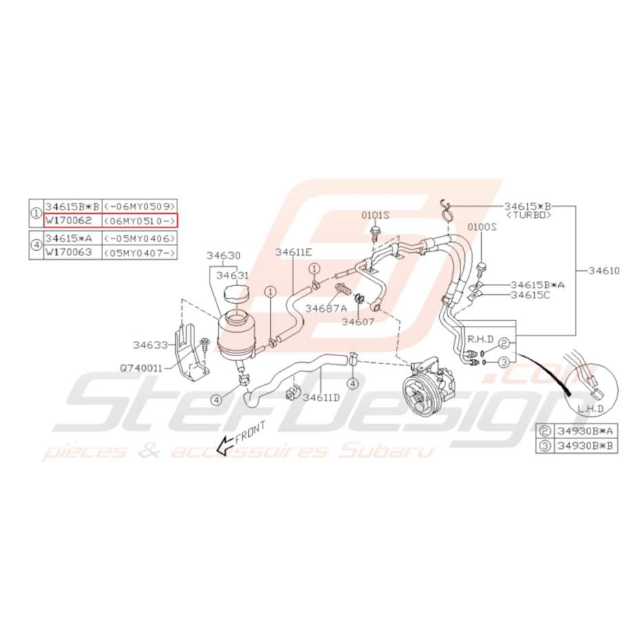 - Système Direction Assistée Tuyau et Réservoir pour Subaru WRX STI de 2008 à 2014.