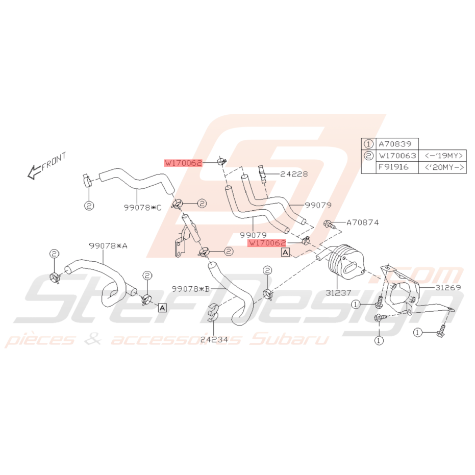 - Bocal et Durites de DA pour Subaru WRX STI du 10 Mai 2006 à 2007.
