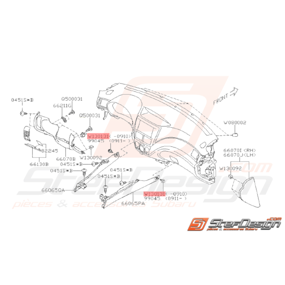 Agrafe Tableau de Bord pour Subaru WRX STI de 2008 à Octobre 2009.