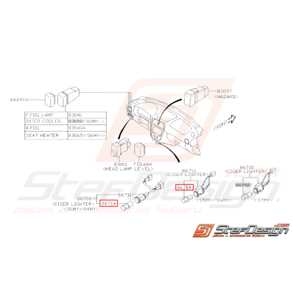 Allume Cigare pour Subaru WRX STI de 2001 à 2006.