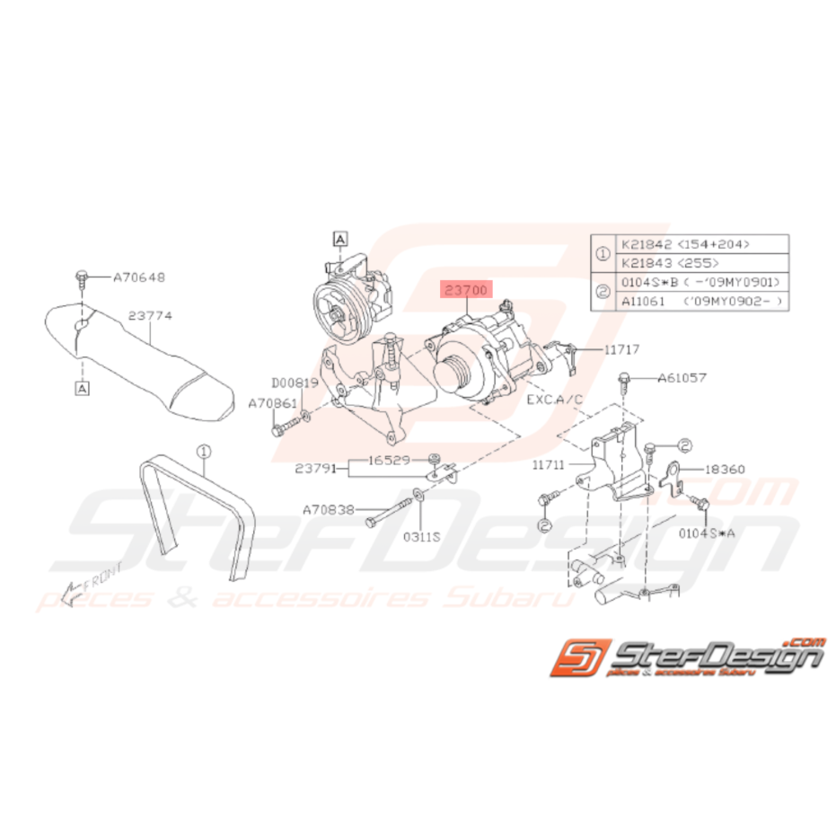Alternateur pour Subaru WRX STI de 2006 à 2012.
