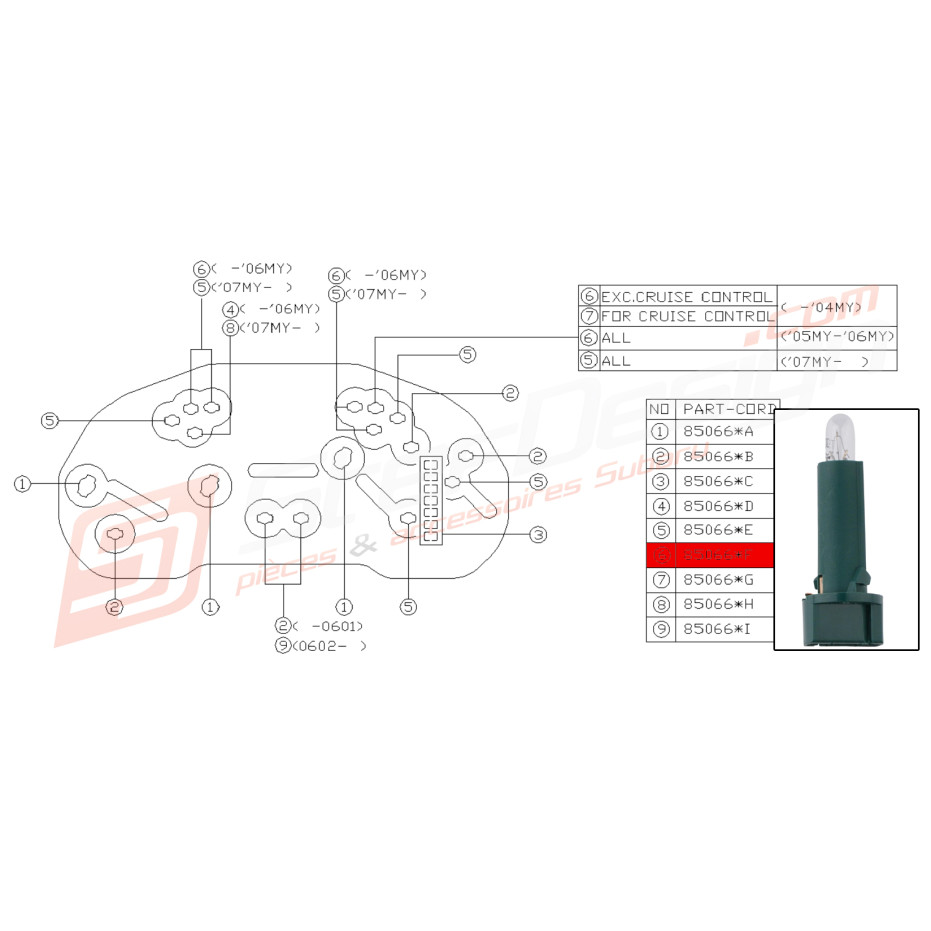 Ampoule de compteur origine n°6 pour Subaru forester SG9 du 04.2004 au 05.2005