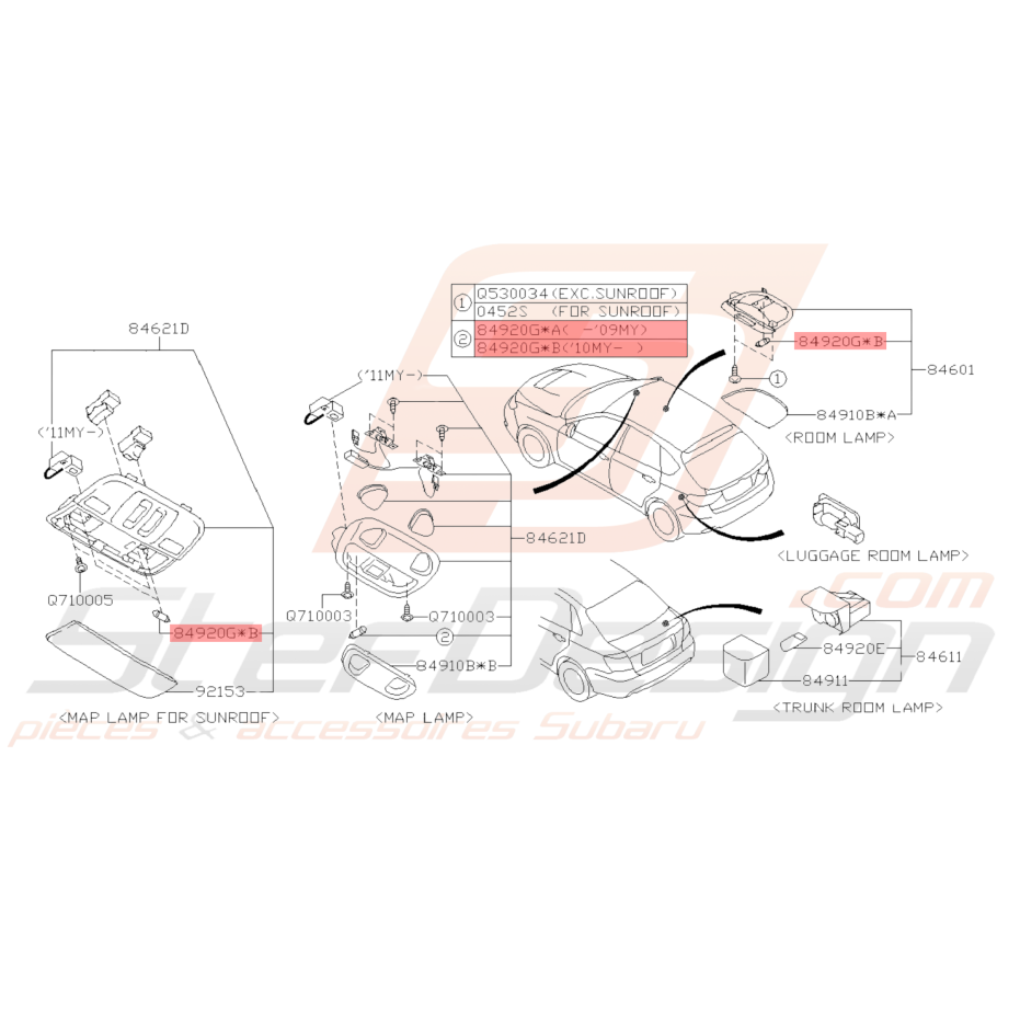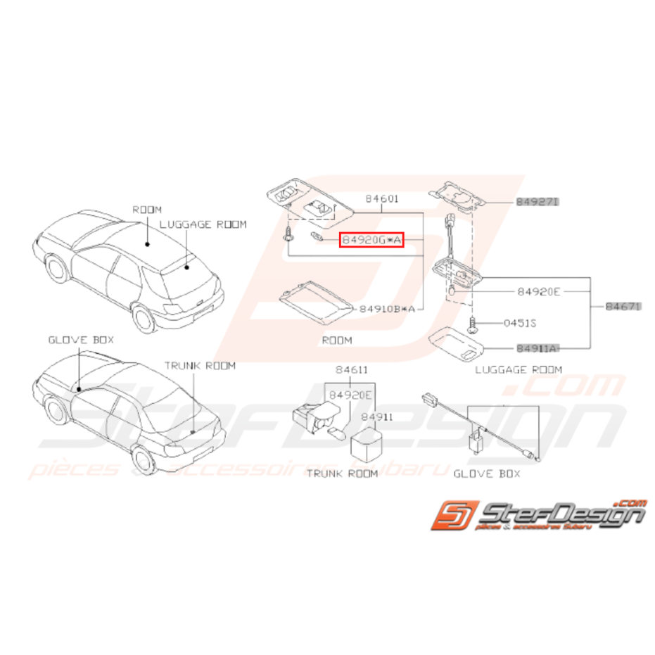 Ampoule de plafonnier pour SUBARU GT de 1995 à 2000 et WRX STI de 2001 à 2014.