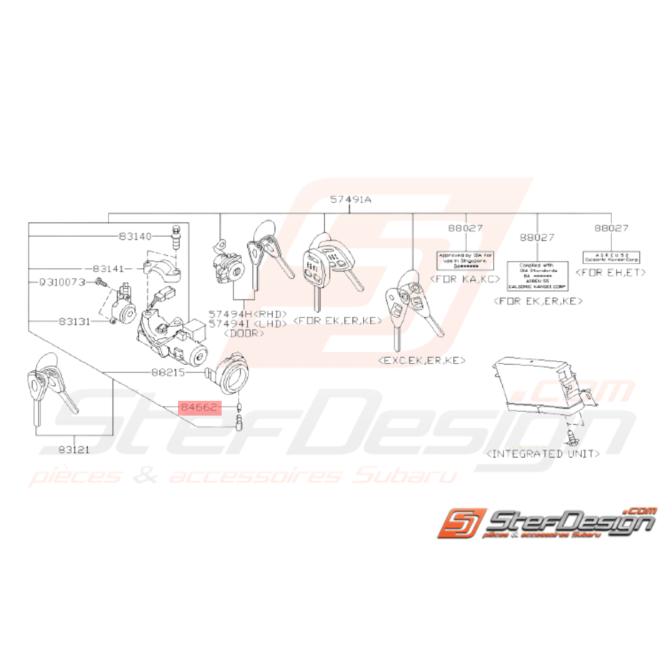Ampoule Eclairage de Barillet pour Subaru WRX STI de 2008 à 2014.