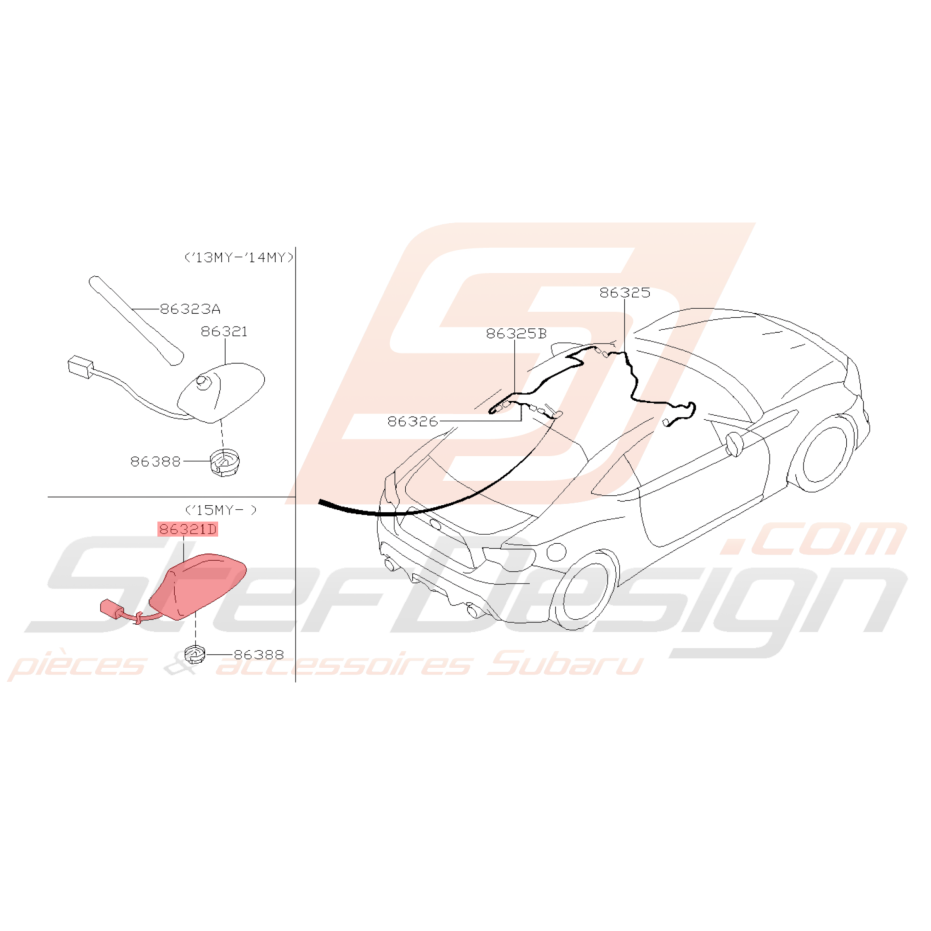 Antenne Requin pour Subaru BRZ de 2015 à 2017.