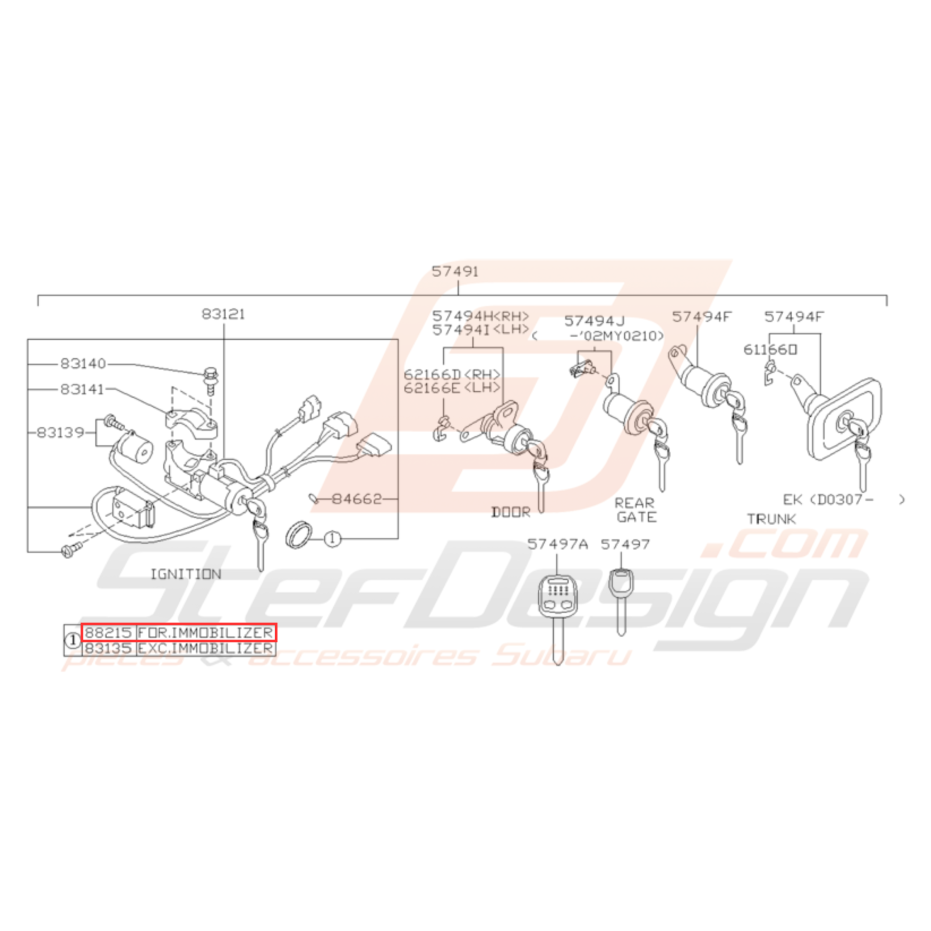 Antidémarrage pour Subaru WRX STI de 2006 à 2007.