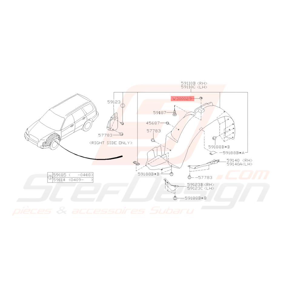 Attache (support) garde-boue pour SUBARU GT de 08/99 à 2001, WRX et STI de 2001 à 2014.