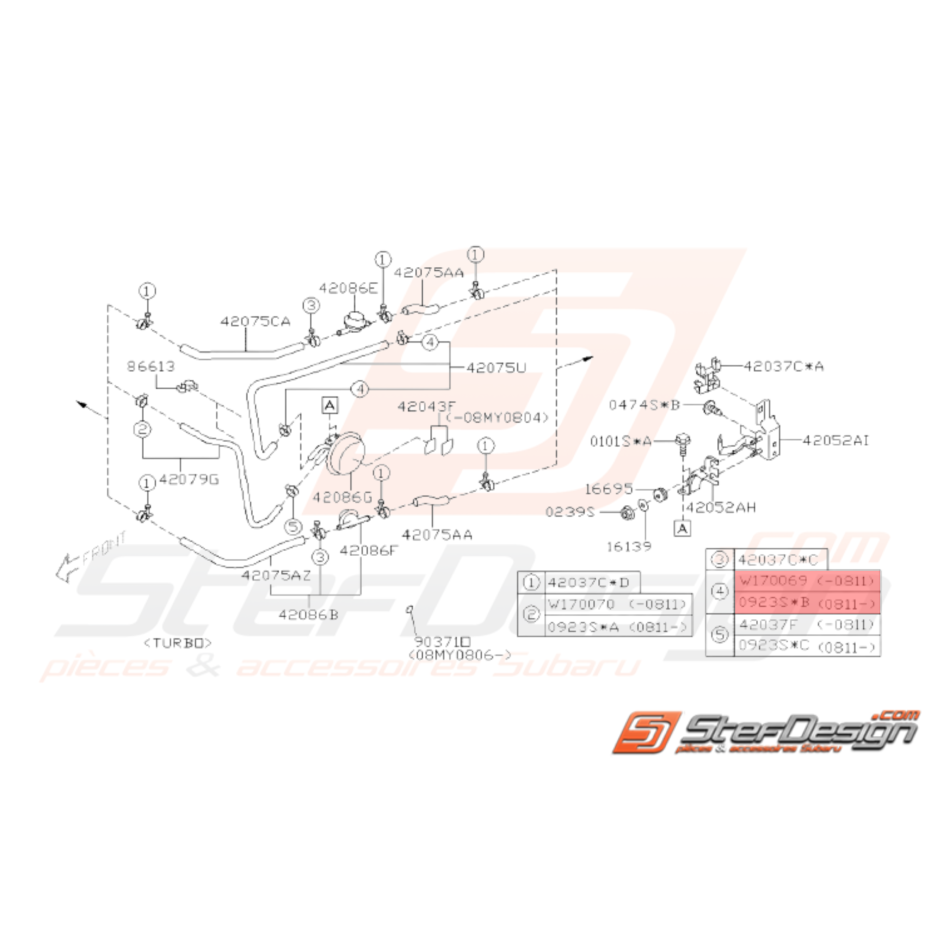 Attache tuyaux durite de vase d’expansion pour SUBARU GT de 1997 à 2000, WRX STI de 2001 à 2014 et BRZ de 2013 à 2019.
