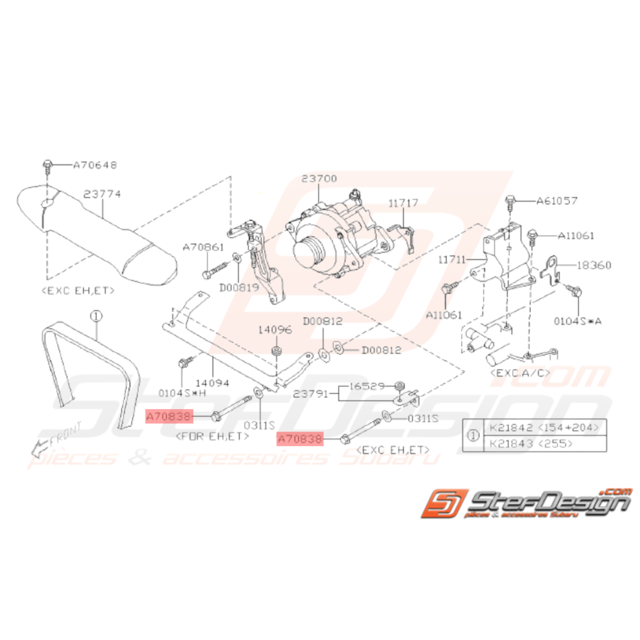 Axe d'alternateur Origine Subaru GT 93-00 WRX STI 01-14 FORESTER 97-02/05-07