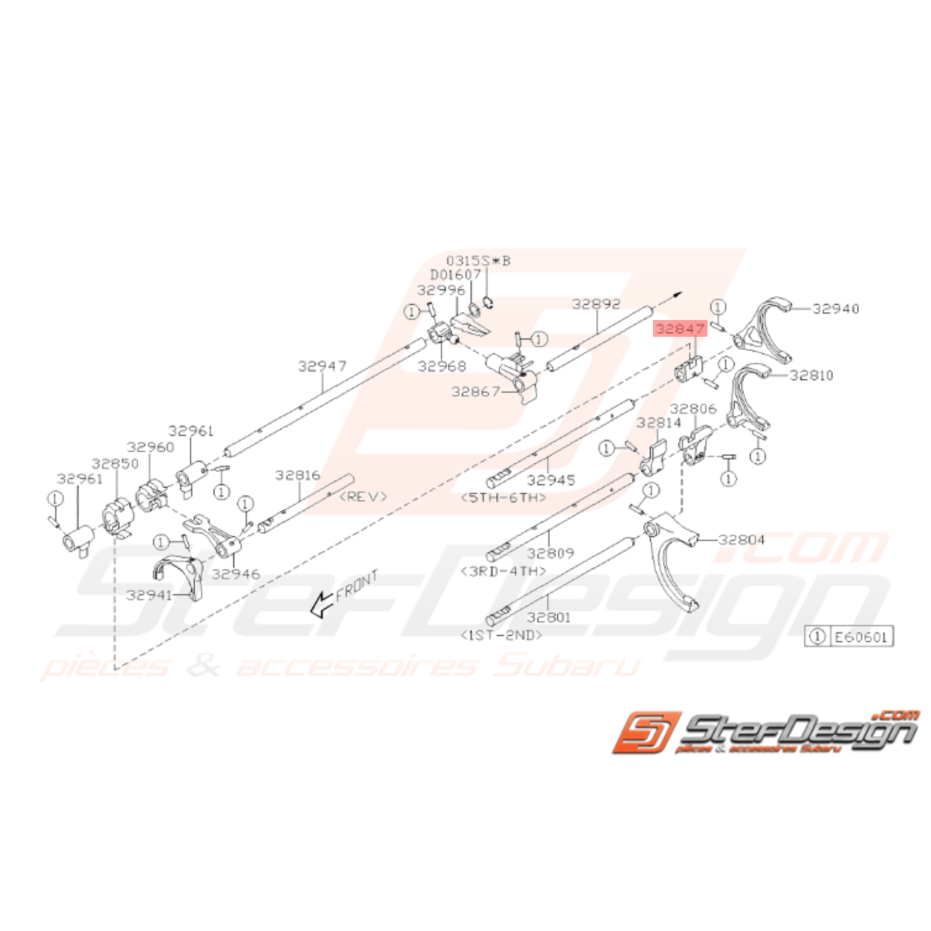 Axe de fourchette pour Subaru STI de 2001 à 2014.