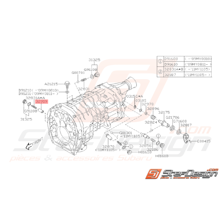 Axe de verrouillage boite 6 vitesses pour SUBARU STI de 2001 à 2014.