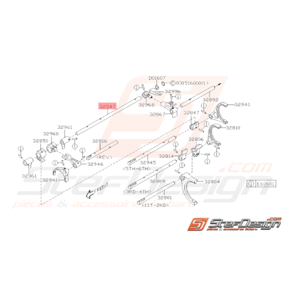 Axe sélecteur de boite 6 vitesses pour SUBARU STI de 2001 à 2014.