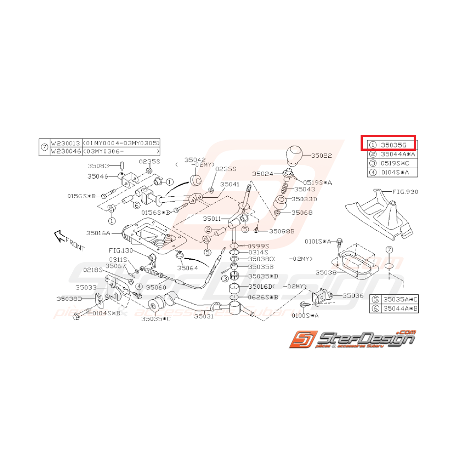 Bague de raccord de levier de vitesse pour SUBARU STI de 2003 à 2005