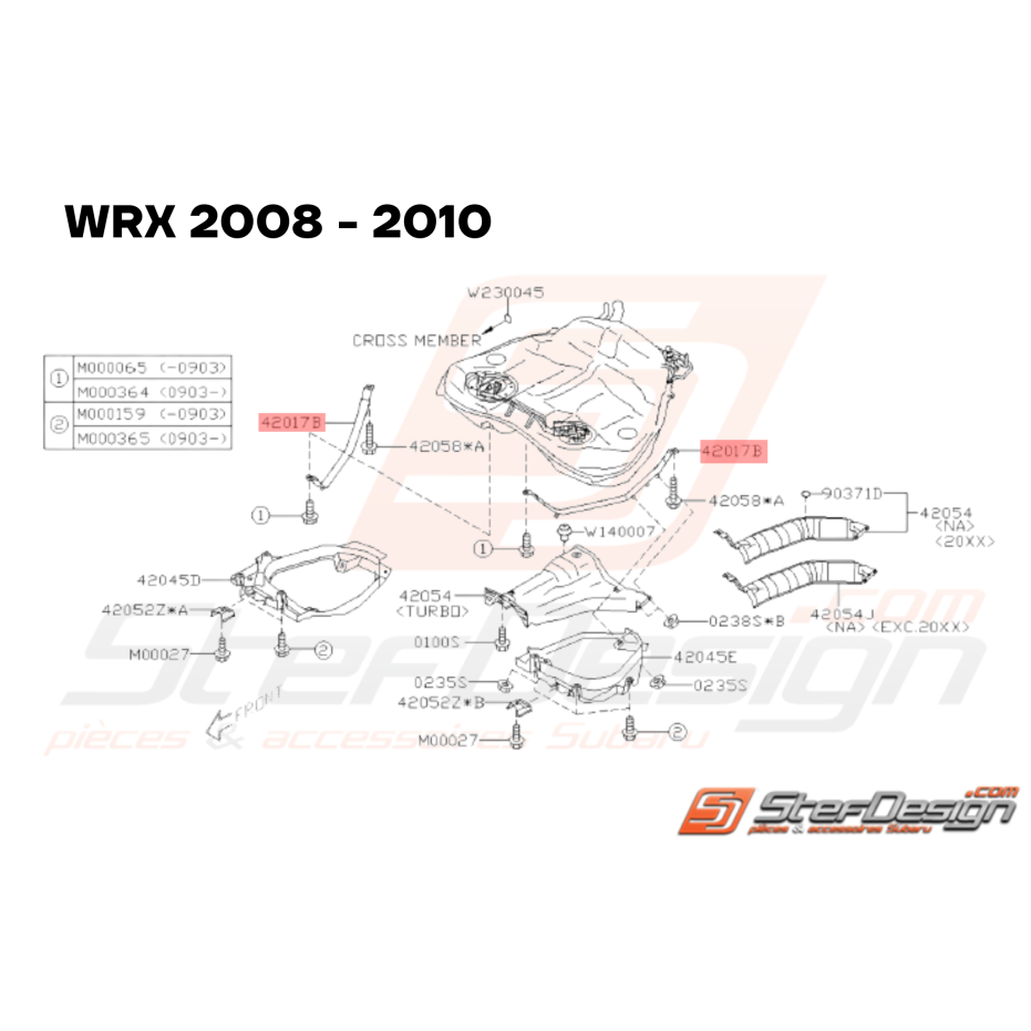 Bande Support Gauche du Réservoir d'Essence pour Subaru WRX STI de 2008 à 2014.