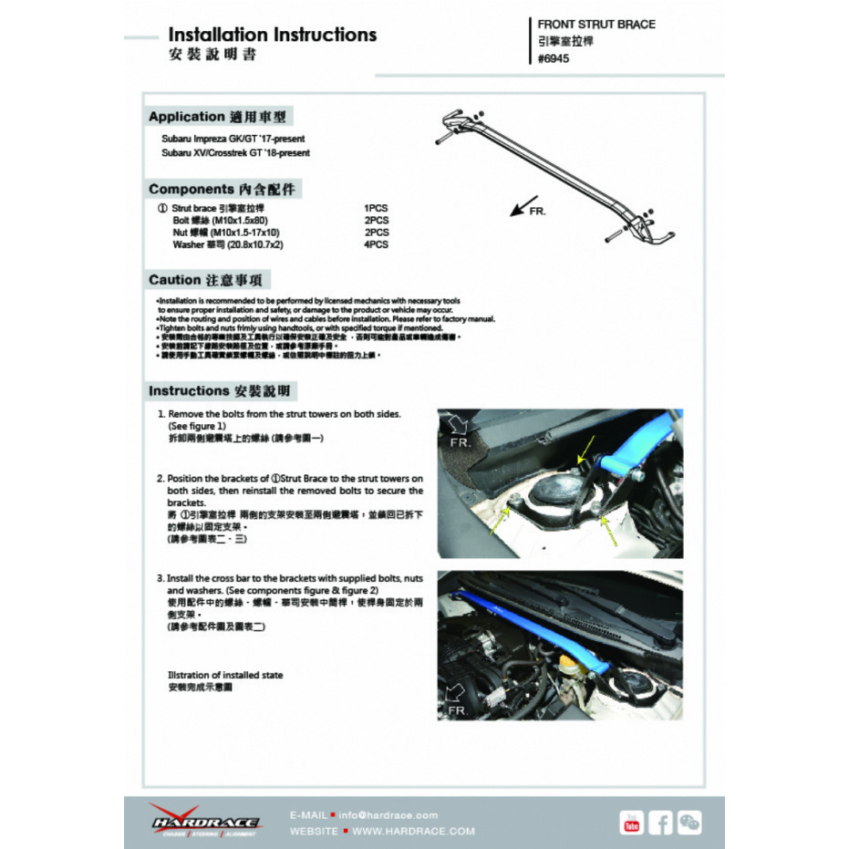 Barre anti rapprochement avant Hardrace Subaru xv + forester