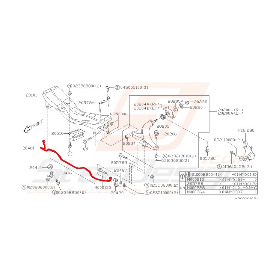 Barre anti-roulis avant origine pour subaru impreza WRX 2003 break