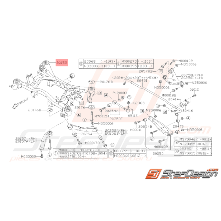 Berceau arrière pour SUBARU WRX de 2008 à 2011.