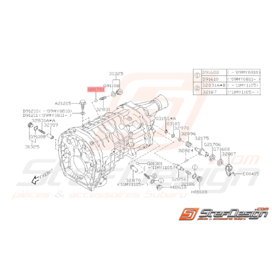 Bille de verrouillage axe boite de vitesses GT 98-00 WRX STI 01-14 FORESTER 05-07