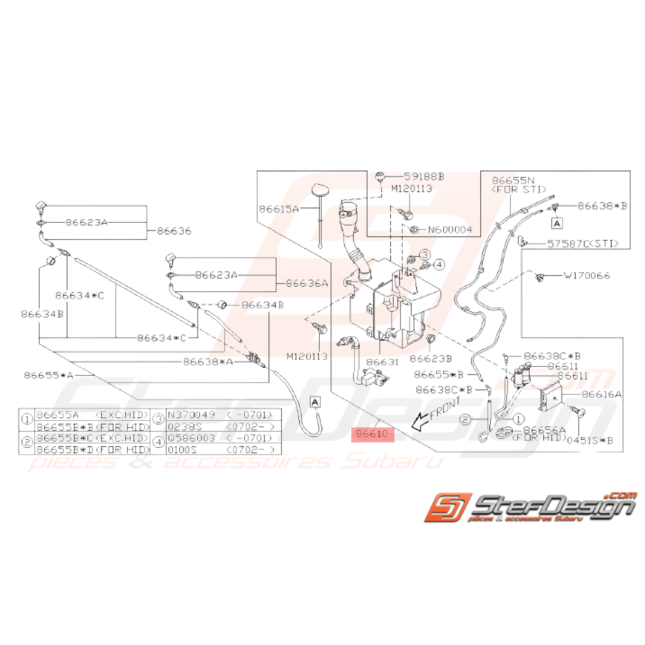 Bocal lave glace complet pour Subaru STI de 2006 à 2007.