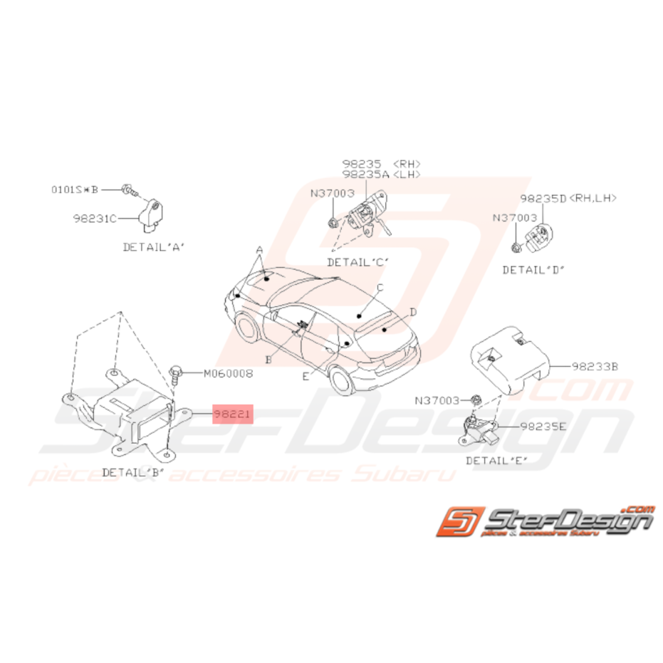 Boitier de Commande d'Airbag (Sans Airbag Latéral) pour Subaru WRX de 2008.