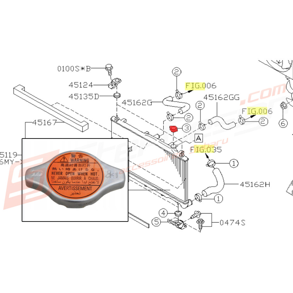 Bouchon de radiateur d'eau origine pour Subaru Outback 3.0R 03.2005 au 06.2006 (date de fabrication du véhicule pas de sa mise en circulation).