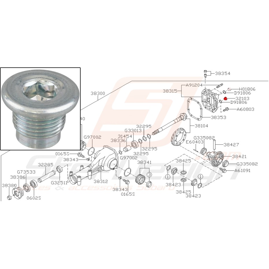 Bouchon de vidange de pont arrière pour Subaru Levorg