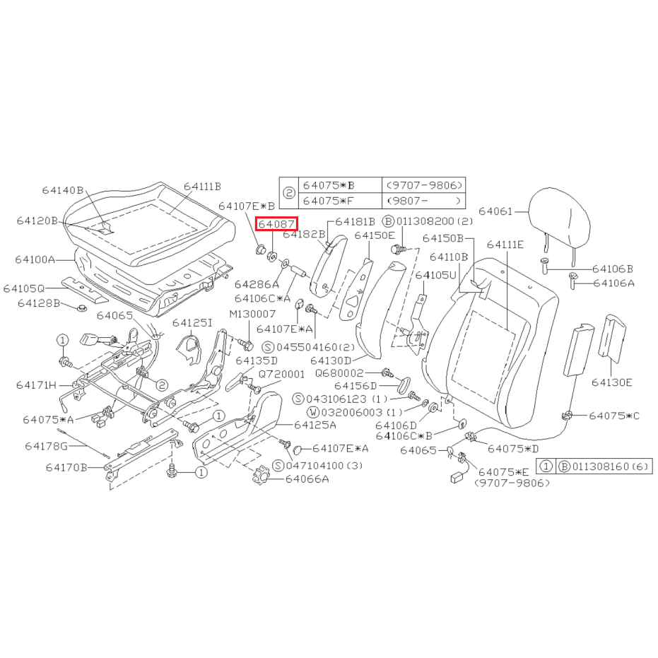 Boulon d'accoudoir de siège conducteur pour Subaru Forester Turbo de 1997 à 2002