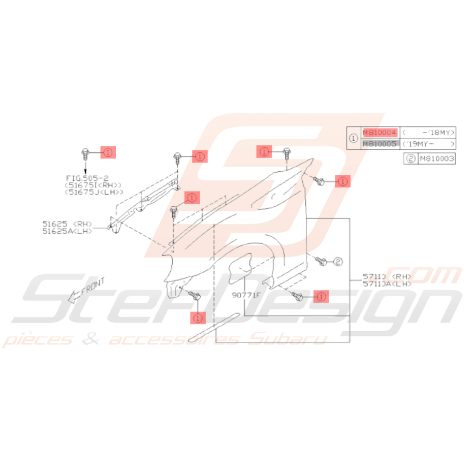 Boulon Aile Avant Subaru WRX STI 2011 - 2014 BRZ 2013 - 2018