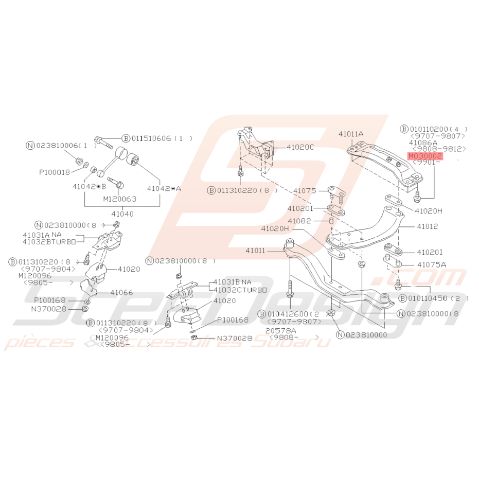 Boulon de Fixation De Support de Boite Subaru GT 99-00 FORESTER 97-02/05-07 WRX/STI 01-14 BRZ 13-19