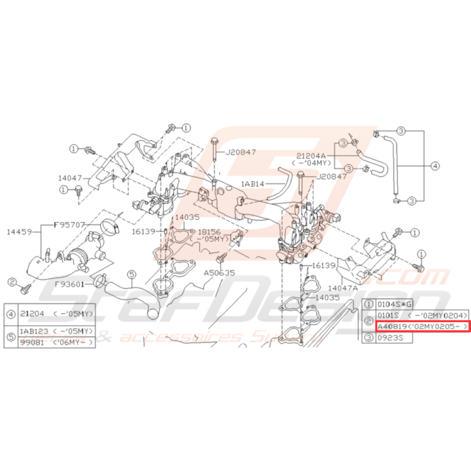 - Système de collecteur d'admission pour Subaru WRX STI de Mai 2002 à 2014.