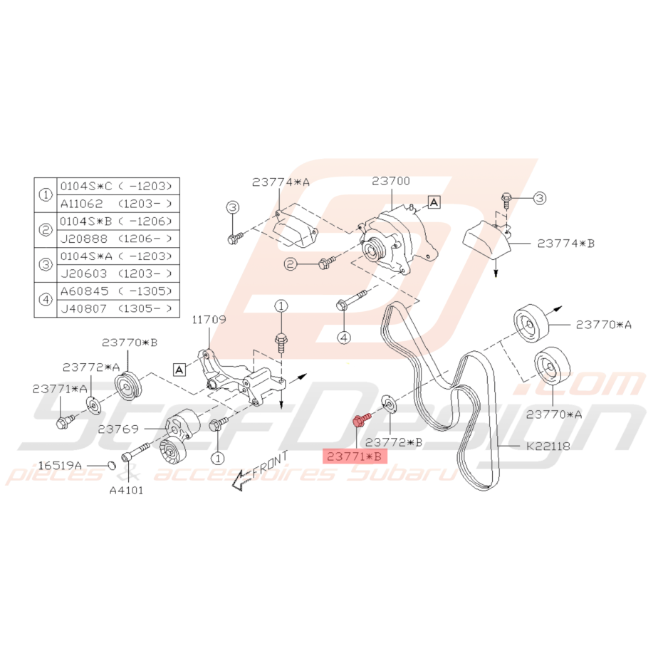 Boulon Poulie de Tension pour Subaru BRZ de 2013 à 2019.