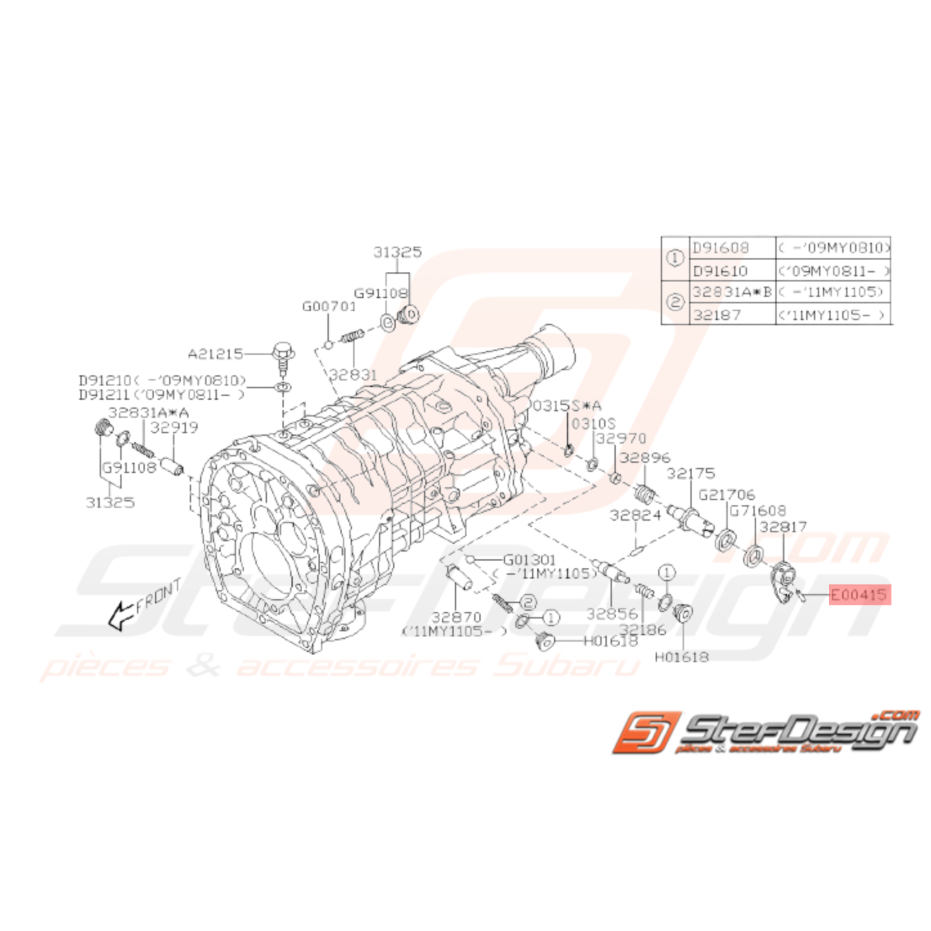 Broche blocage Levier MAR boite 6 vitesses pour SUBARU STI de 2001 à 2014.