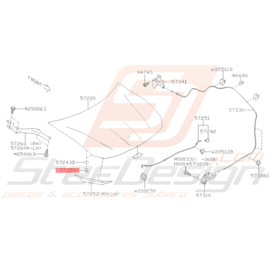 Butée Caoutchouc Capot pour Subaru WRX et STI de 2008 à 2014 et BRZ de 2013 à 2019.