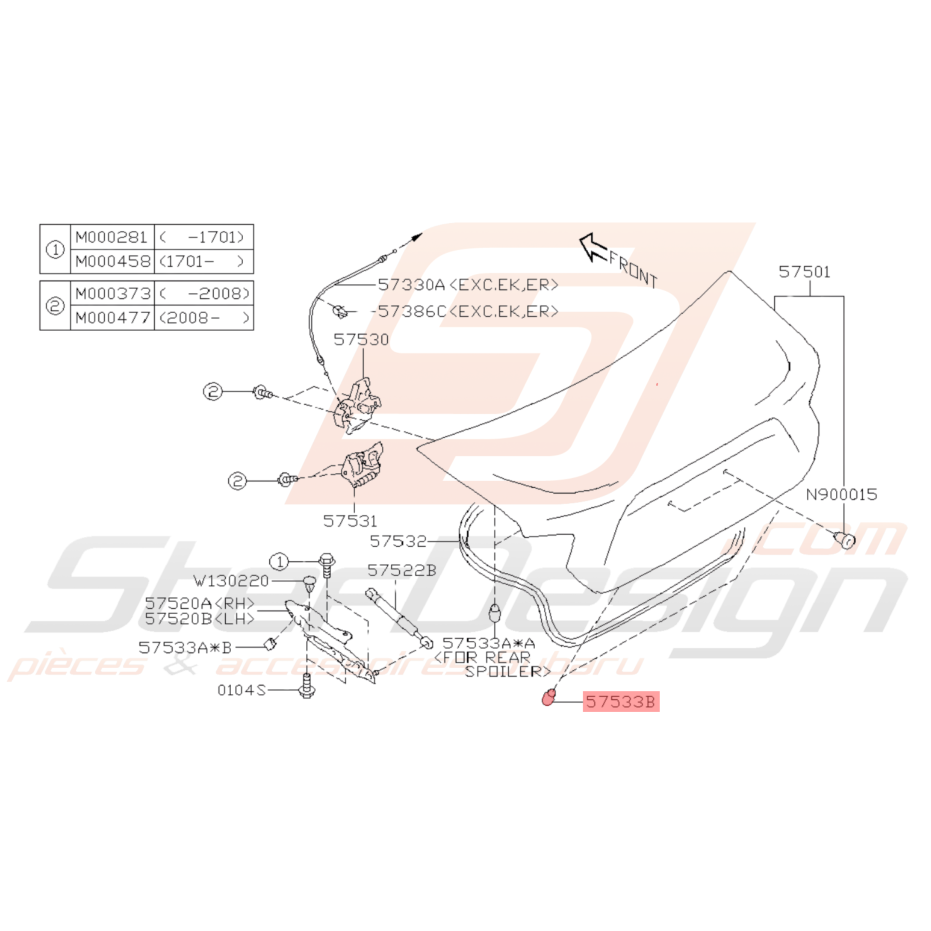 Butée en caoutchouc coffre pour SUBARU WRX STI de 2001 à Mars 2004 et BRZ de 2013 à 2019.