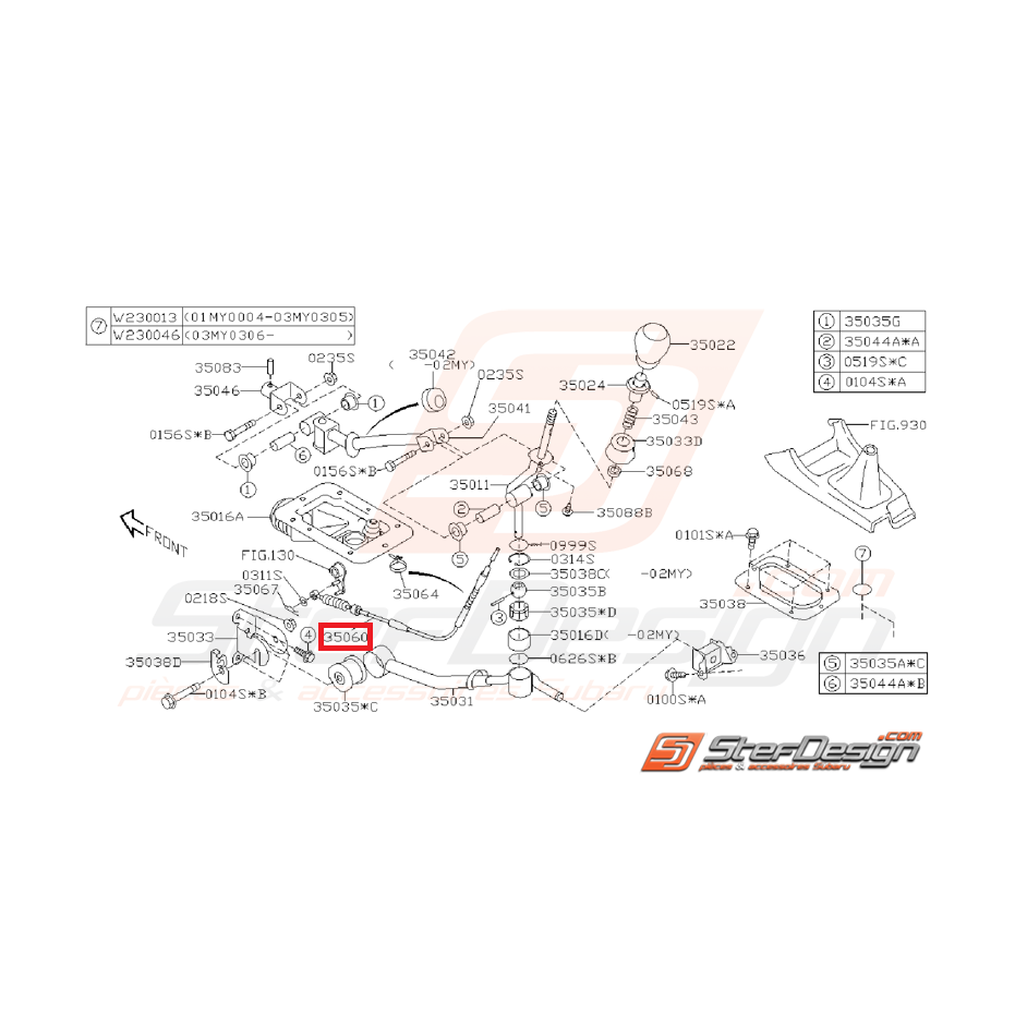 Câble de levier de vitesse Origine Subaru STI 01-07