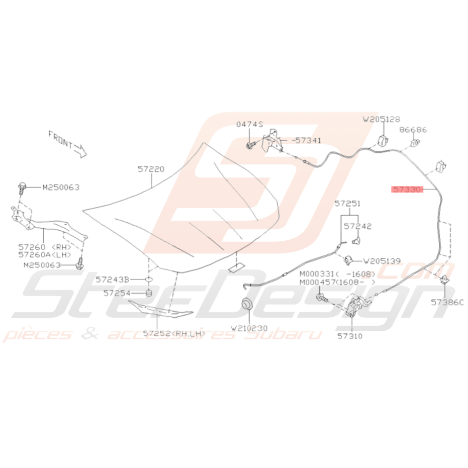 Cable Ouverture de Capot pour Subaru BRZ de 2013 à 2019.