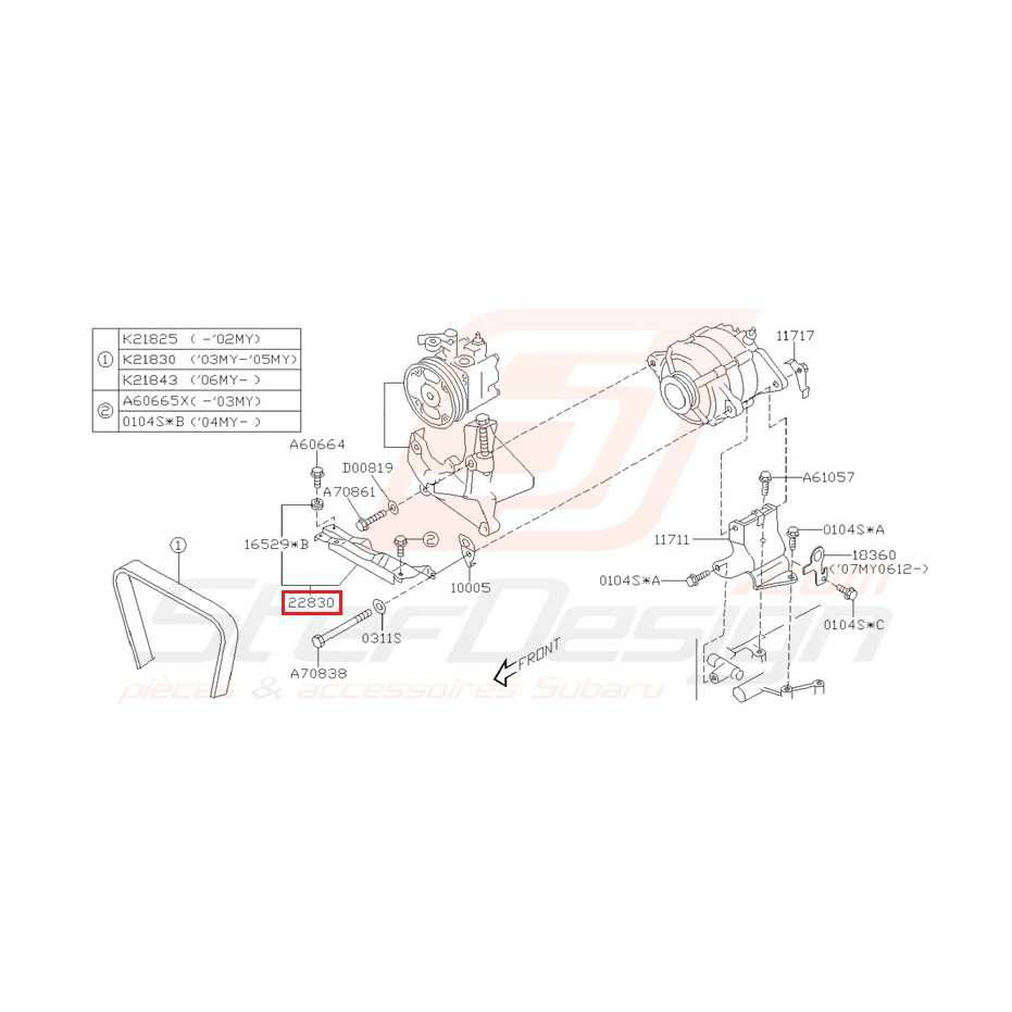 Cache courroie de direction assistée pour WRX STI de 2001 à 2002.