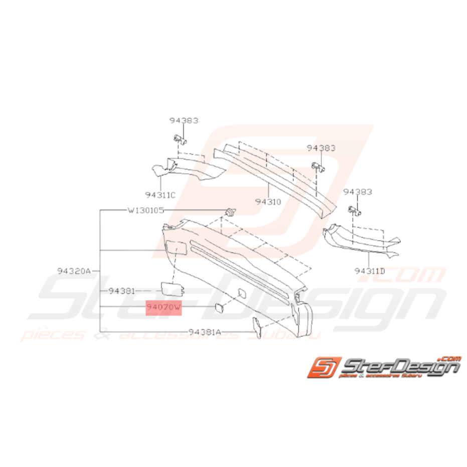Cache Garniture de Hayon pour Subaru WRX STI de 2008 à 2014.