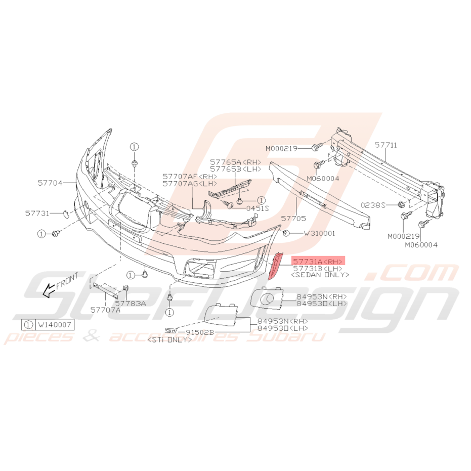 Cache Latéral de Pare-Choc Avant pour Subaru WRX STI de 2007.
