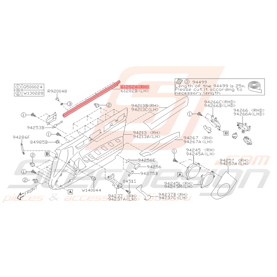 Caoutchouc d'étanchéité Porte Avant Intérieur Origine Subaru BRZ 2013 - 2019