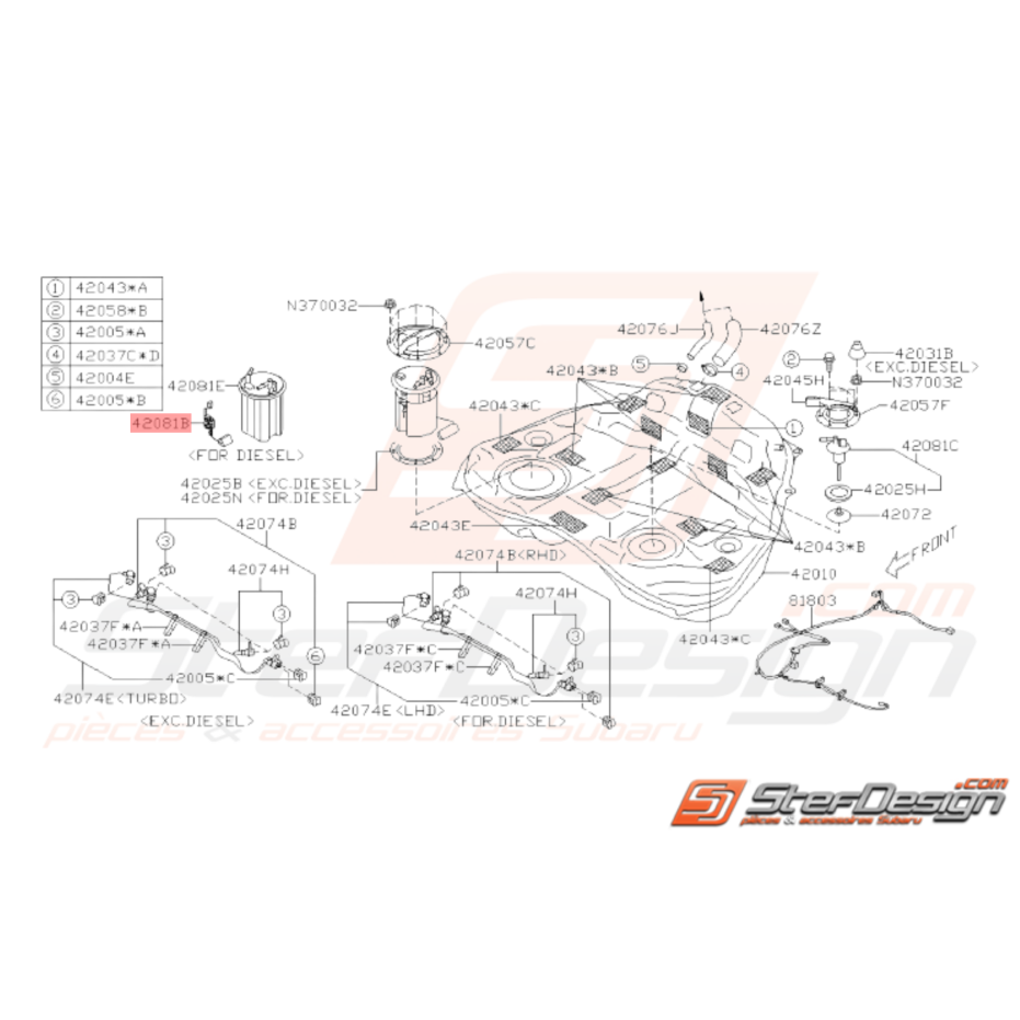 Capteur de niveau d'essence pour Subaru Impreza STI de 2008 à 2014