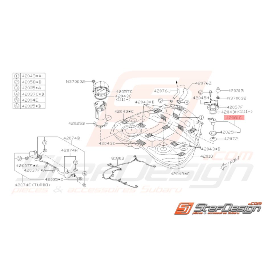 Capteur de niveau d'essence pour Subaru WRX STI de 2008 à 2014.