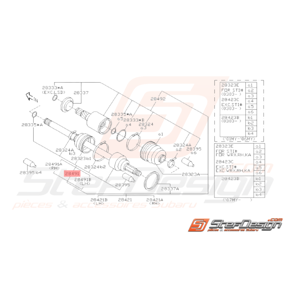 Cardan Arrière Côté Roue pour Subaru STI de 2001 à 2004.