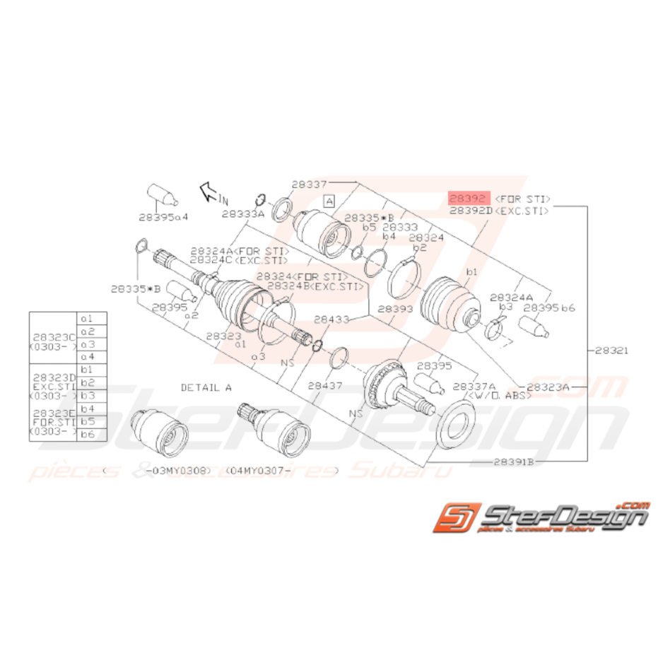 Cardan Avant Côté Boite pour Subaru STI de 2001 à 2003.