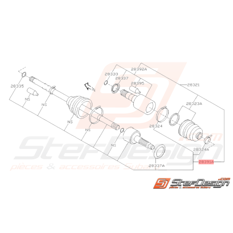 Cardan Avant Côté Roue pour Subaru STI de 2008 à 2014.