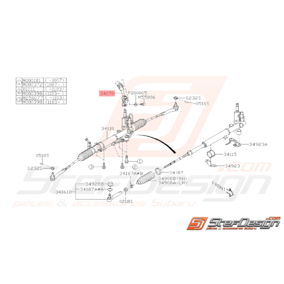 Cardan de Crémaillère de Direction Assistée pour Subaru STI de 2008 à 2014.