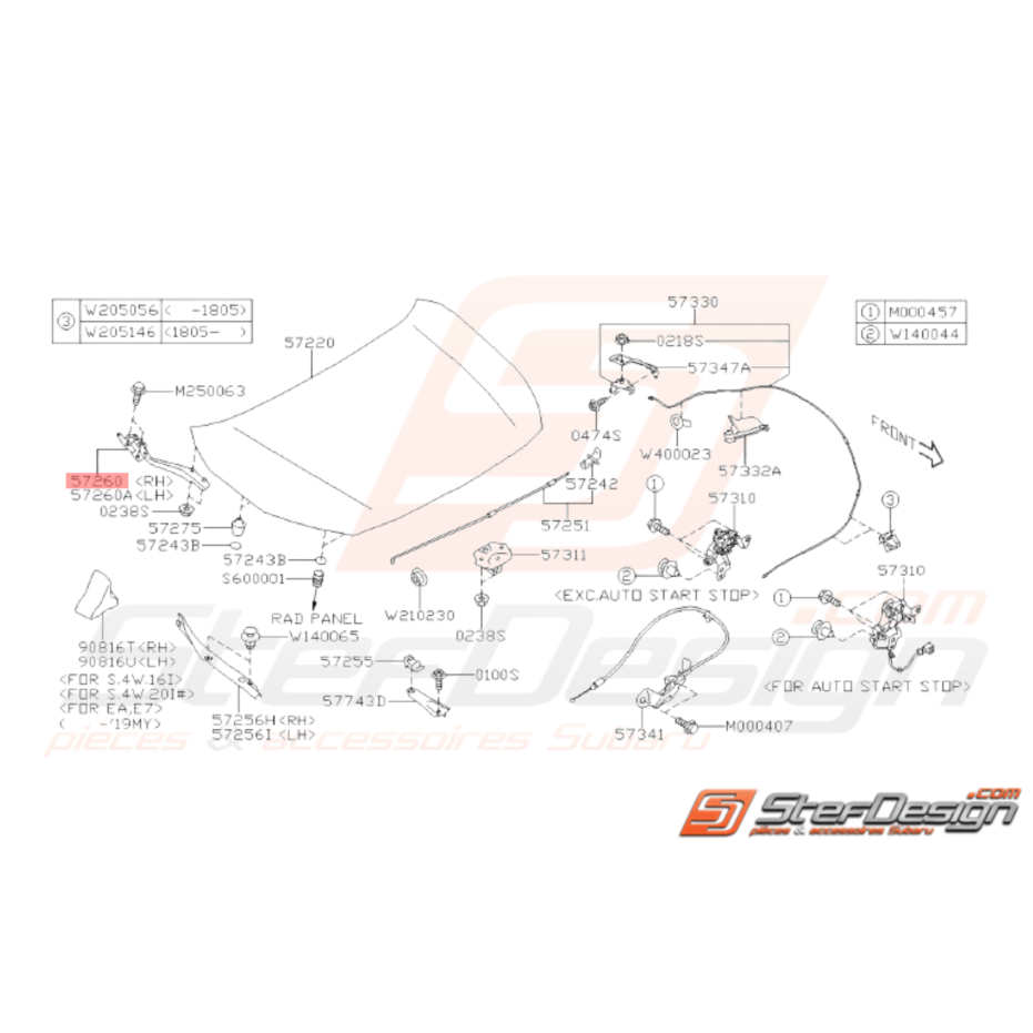 Charnière de Capot Moteur pour Subaru Impreza de 2018 (1.6 L).