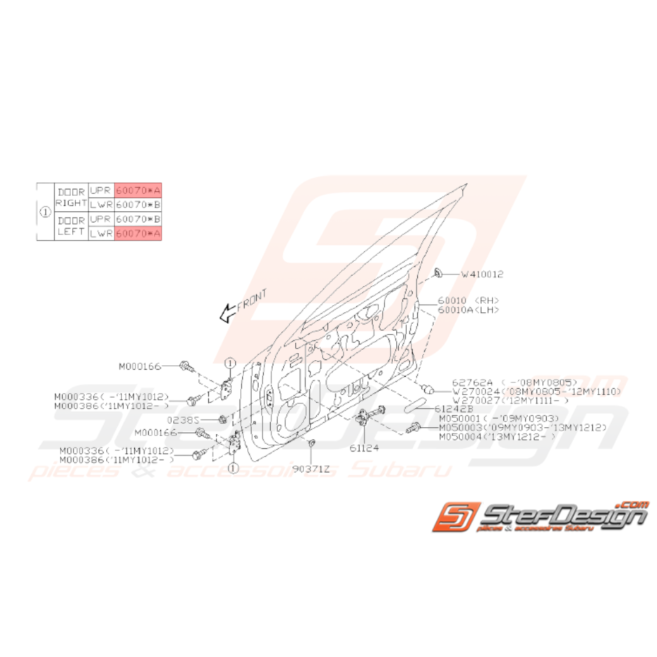 Charnière porte arrière SUBARU IMPREZA GT 1993 à 2000, WRX et STI de 2001 à 2014