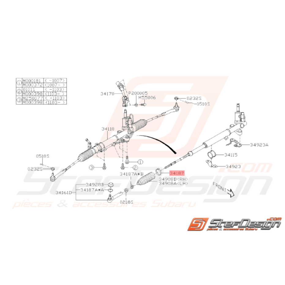Clip de Crémaillère pour Subaru WRX STI de 2008 à 2014.