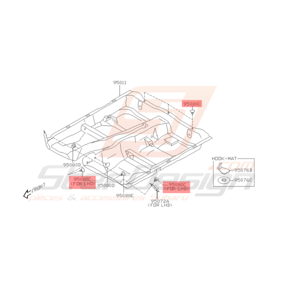 Clip de moquette adaptable pour Subaru impreza GT de Décembre 1997 à 2000 et WRX et STI de 2001 à 2007.